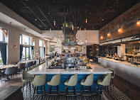 Lively American spot with an open kitchen & centra...